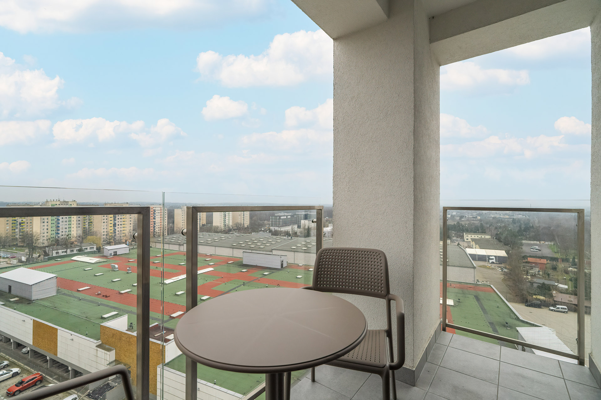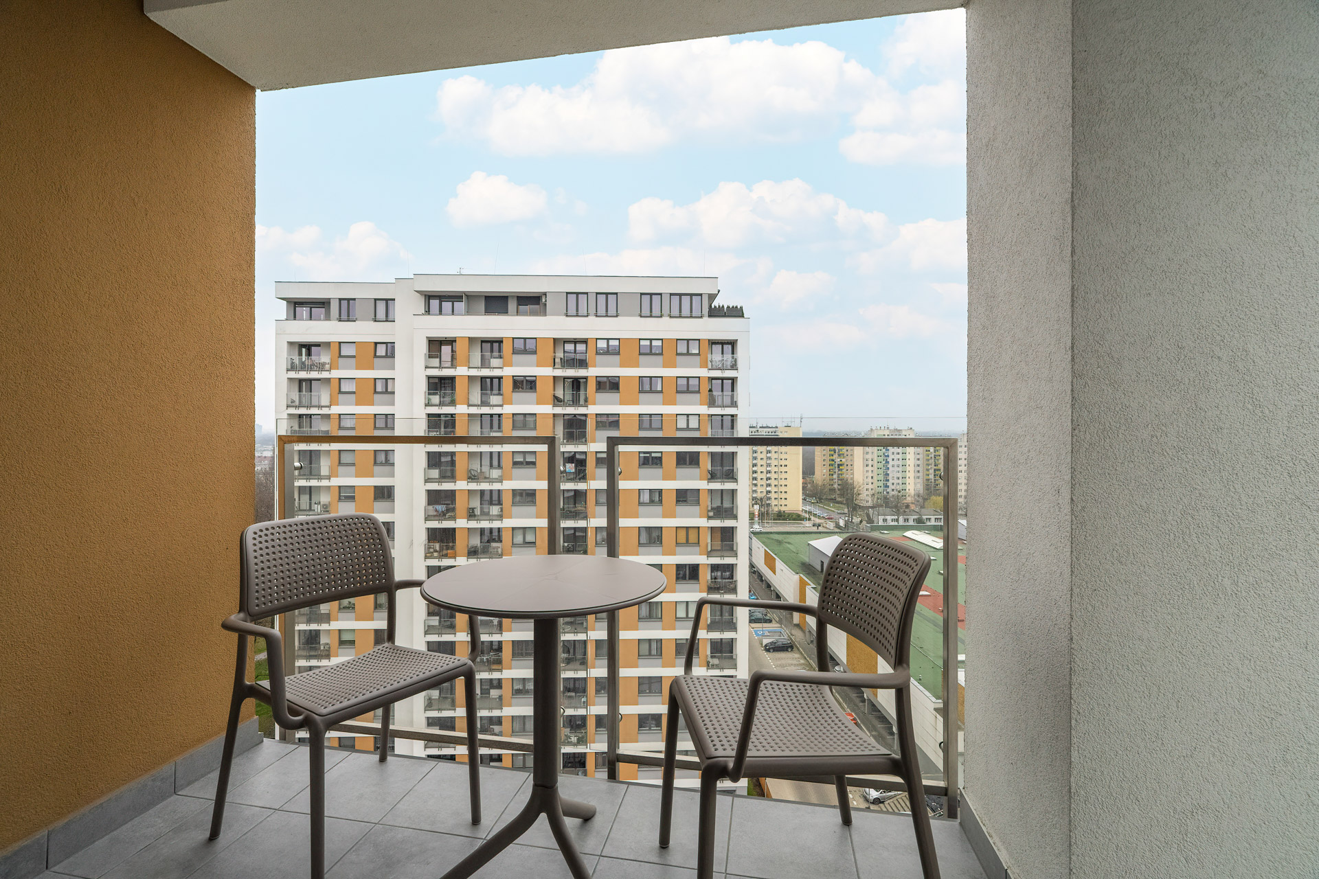 Całość dopełnia balkon, z którego roztacza się widok na zieleń i spokojne osiedle.