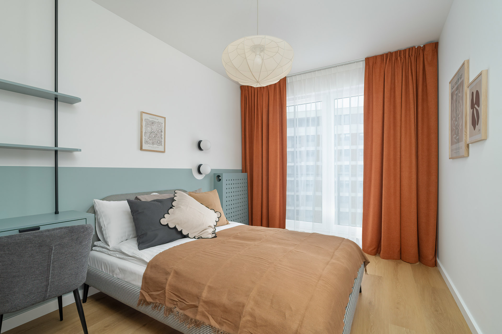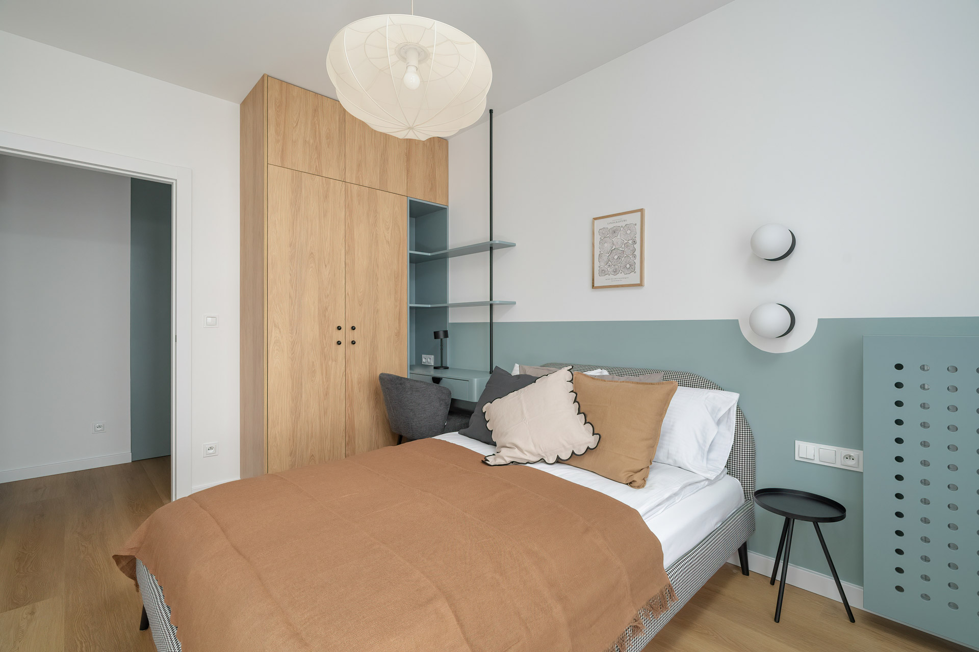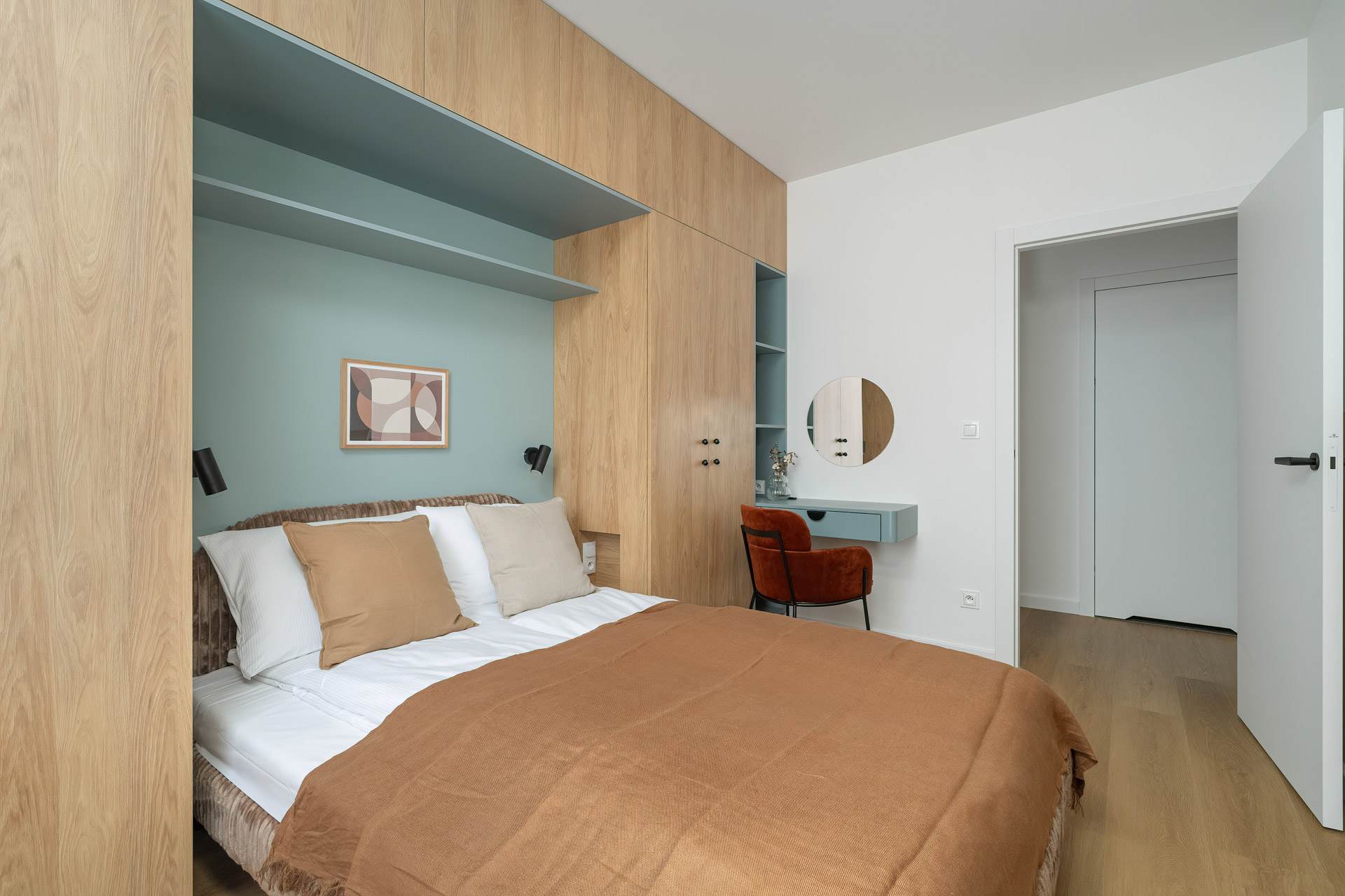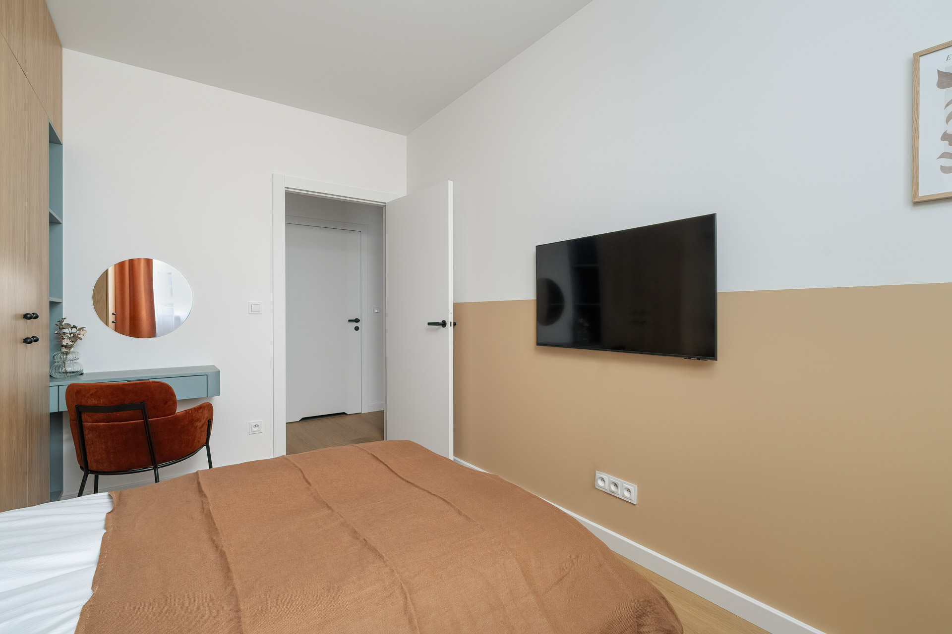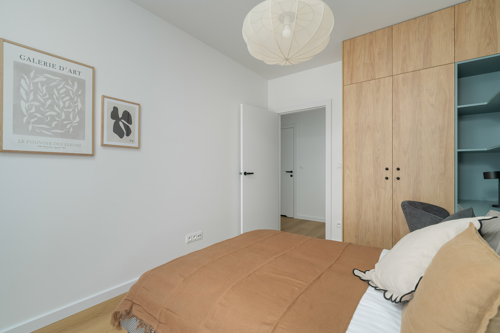 W apartamencie znajduje się również komfortowa sypialnia z pojemną szafą i wyjściem na balkon. Dodatkowy pokój może pełnić funkcję gabinetu, sypialni dla dziecka lub pokoju gościnnego.